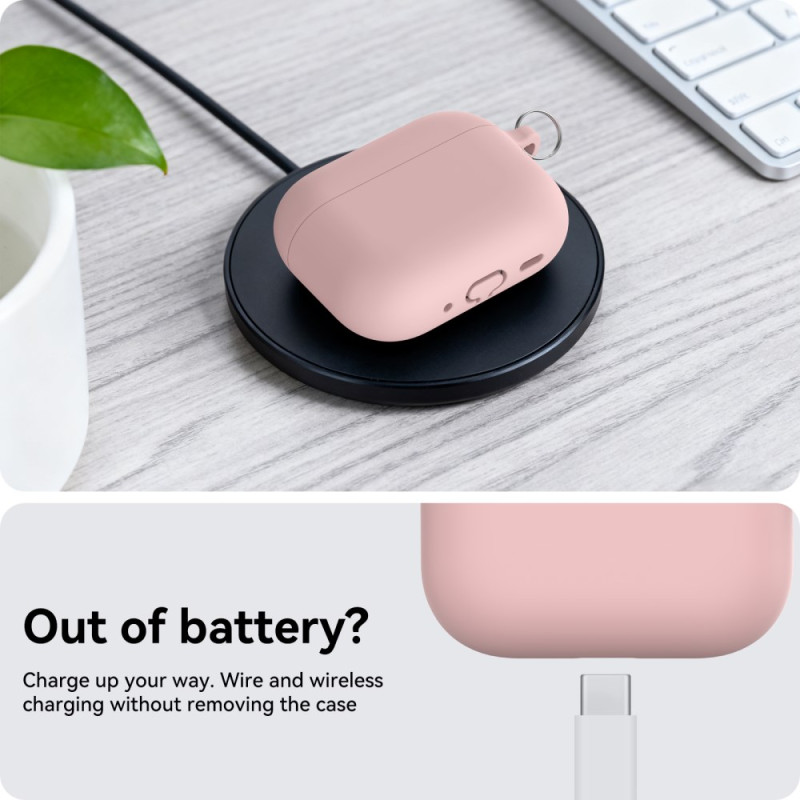 Protect your AirPods Pro 3 with this thickened silicone case with a separate innovative design. Shockproof, non-slip and scratch-resistant, it offers complete protection while allowing wireless and wired charging. Supplied with a practical carabiner for easy everyday carrying.