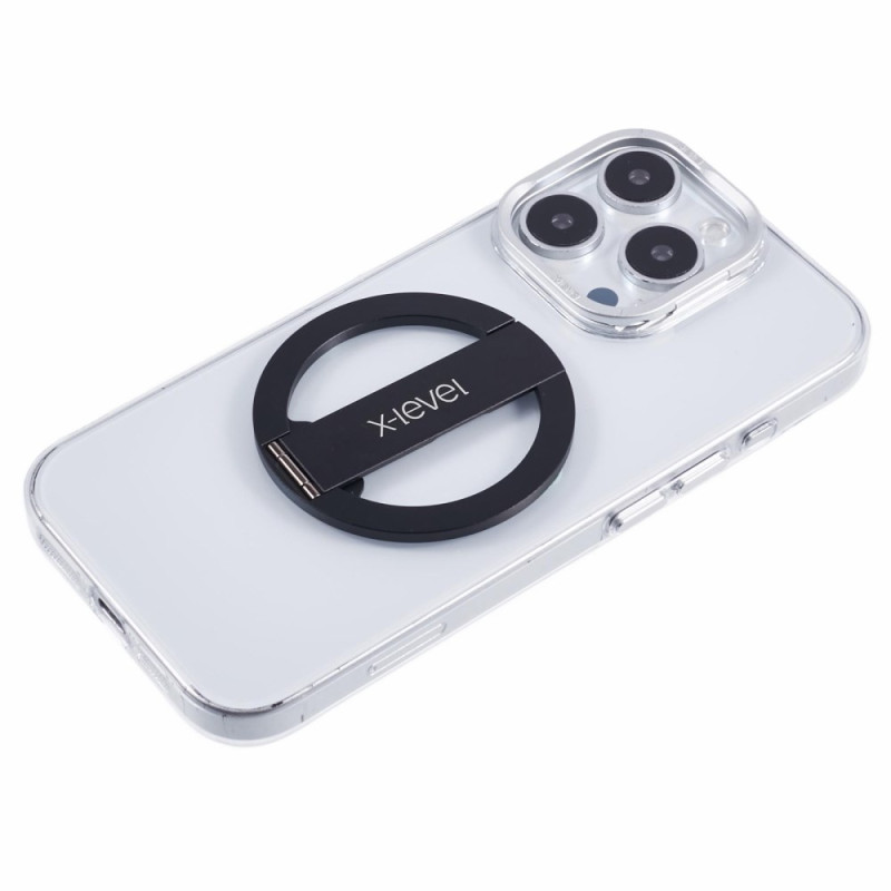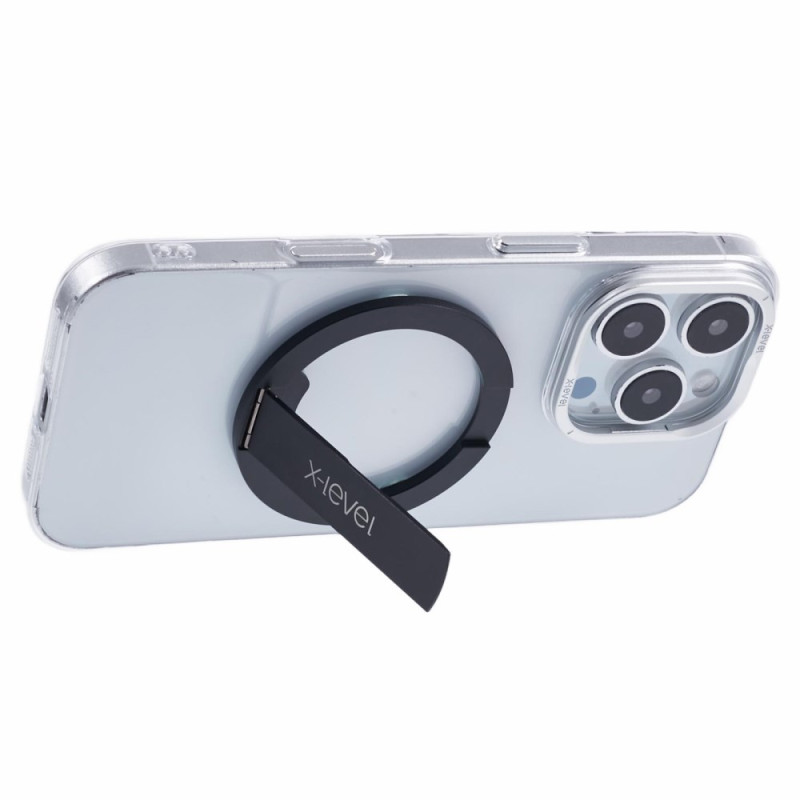The X-LEVEL magnetic phone holder with ring and foot combines elegance and functionality for comfortable everyday use. Its modern, linear design fits perfectly with recent smartphones. Thanks to its powerful magnets, it provides a secure hold for hands-free use in complete safety. Versatile, it can be used both as a support ring for a better grip and as a stand for watching videos or making calls. Made from high-quality metal, it offers durability and stability while remaining slim and attractive. Available in black or silver, it goes easily with any style.