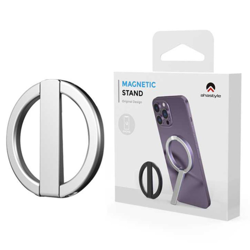The AHASTYLE MagSafe compatible phone holder ring combines elegance, slenderness and robustness for ultra-comfortable everyday use. Made from durable zinc alloy, it provides a powerful and perfectly stable magnetic hold on all MagSafe compatible iPhones. Its 360° adjustable and 90° folding ring provides a secure hold and an ideal viewing position, whether in portrait or landscape mode. Thanks to its openwork design, it doesn't obstruct heat dissipation. Thin, light and comfortable to hold, it provides discreet support without adding bulk to the phone.