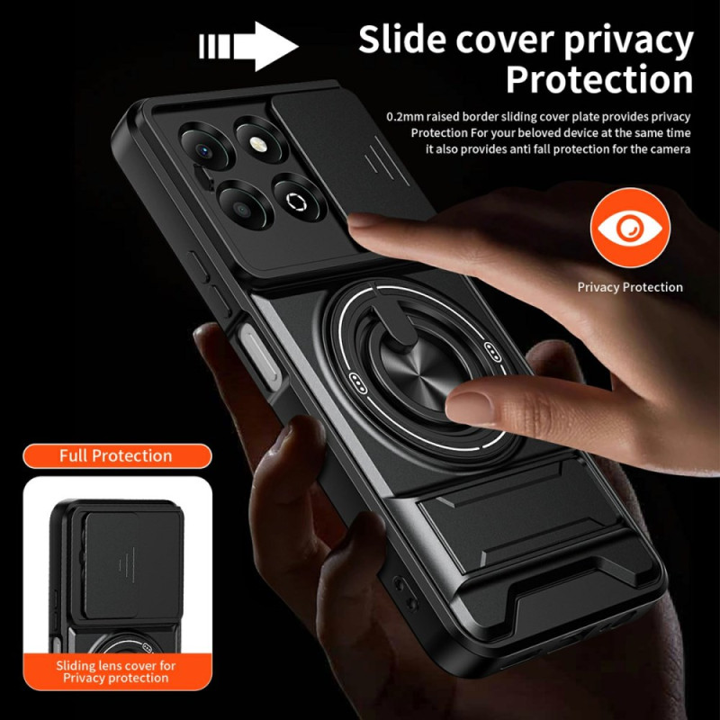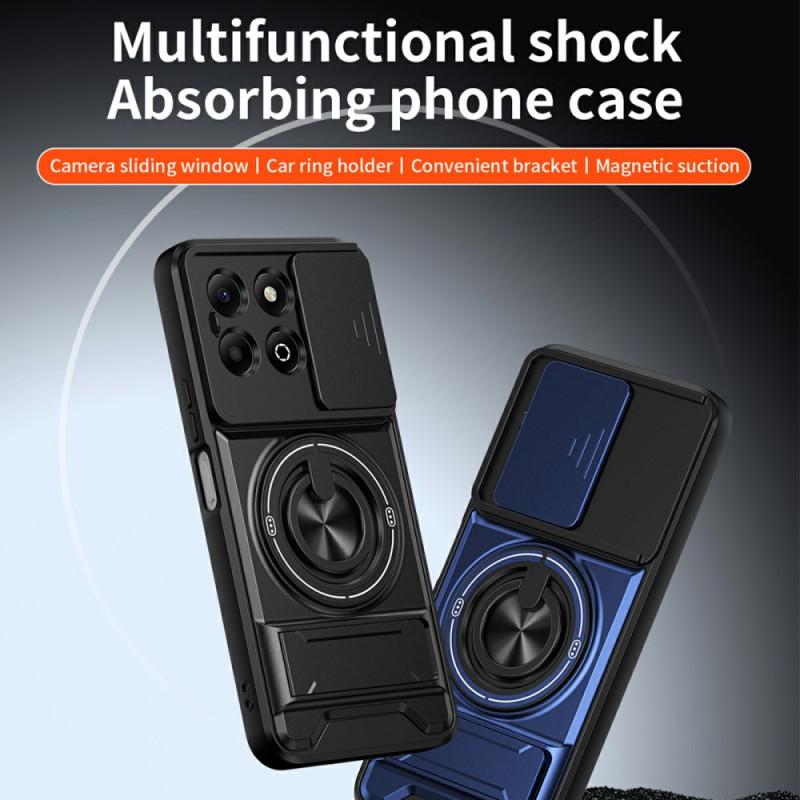 Protect your Honor X6b 4G with this multifunctional magnetic case. Featuring a 360° rotating ring, a foldable support and a sliding lens cover, it combines reinforced protection with everyday practicality.