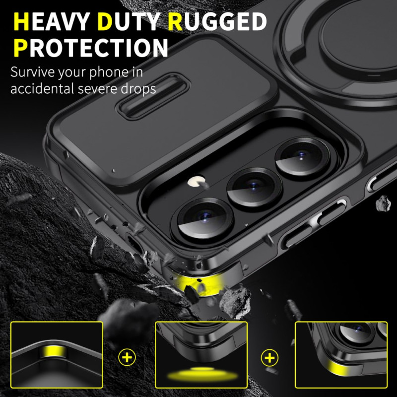 Protégez votre Samsung Galaxy S26 avec cette coque magnétique multifonction. Dotée d'un cache caméra coulissant, d'une béquille rotative et d'un film en verre trempé inclus, elle allie protection maximale et praticité au quotidien.