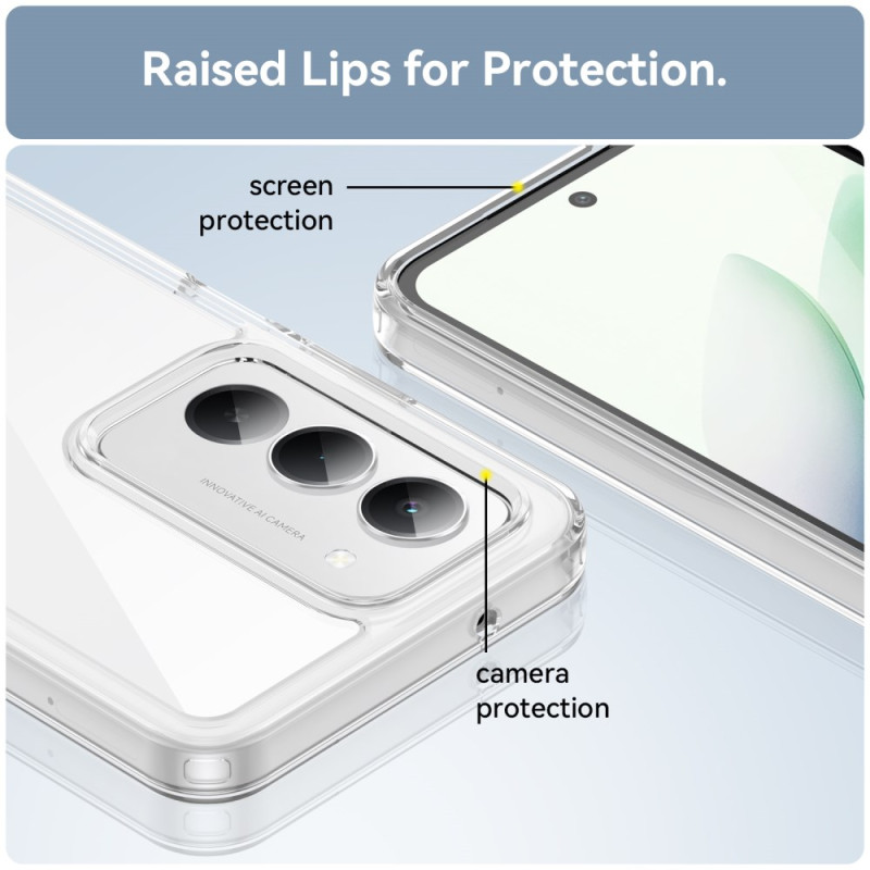 Discover our robust protective case for Xiaomi Redmi 15 5G / 4G. With its TPU and clear acrylic design, it offers complete protection against bumps and scratches. Its reinforced corners, raised edges and tempered glass film ensure maximum security for your device.