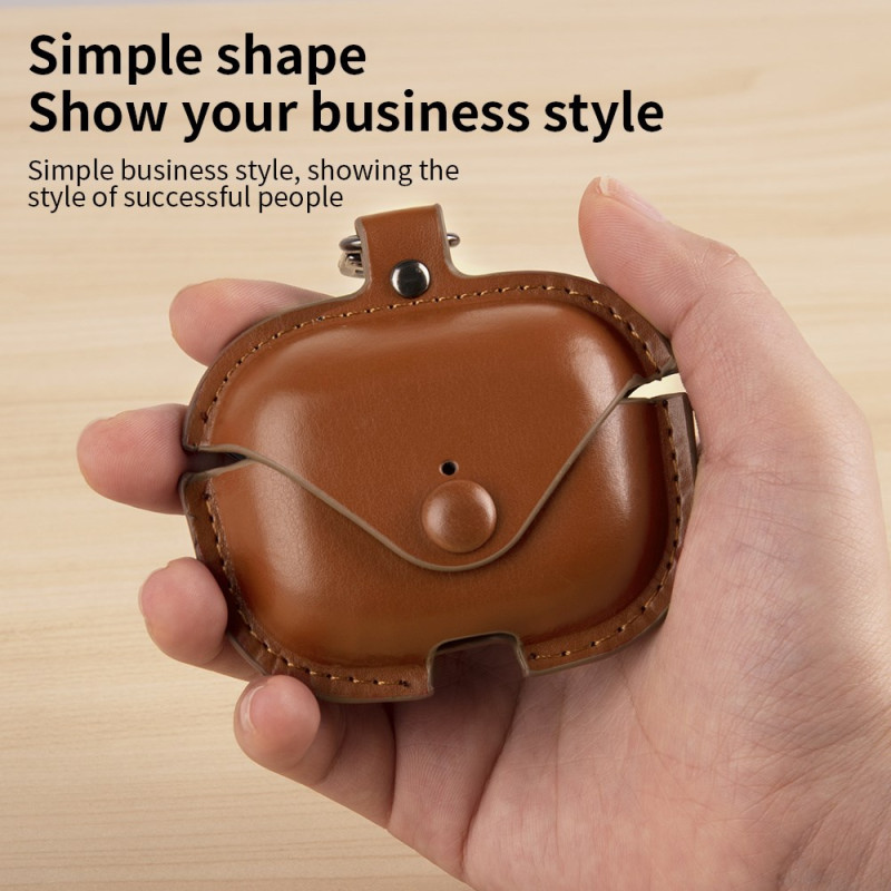 Schützen Sie Ihre AirPods Pro 3 elegant mit dieser robusten Tasche aus Premium-Leder und PC. Professionelles Design mit Druckknopfverschluss und praktischem Karabinerhaken, mit dem Sie die Tasche an Ihren Schlüsseln befestigen können. Rundumschutz vor Kratzern und Staub.