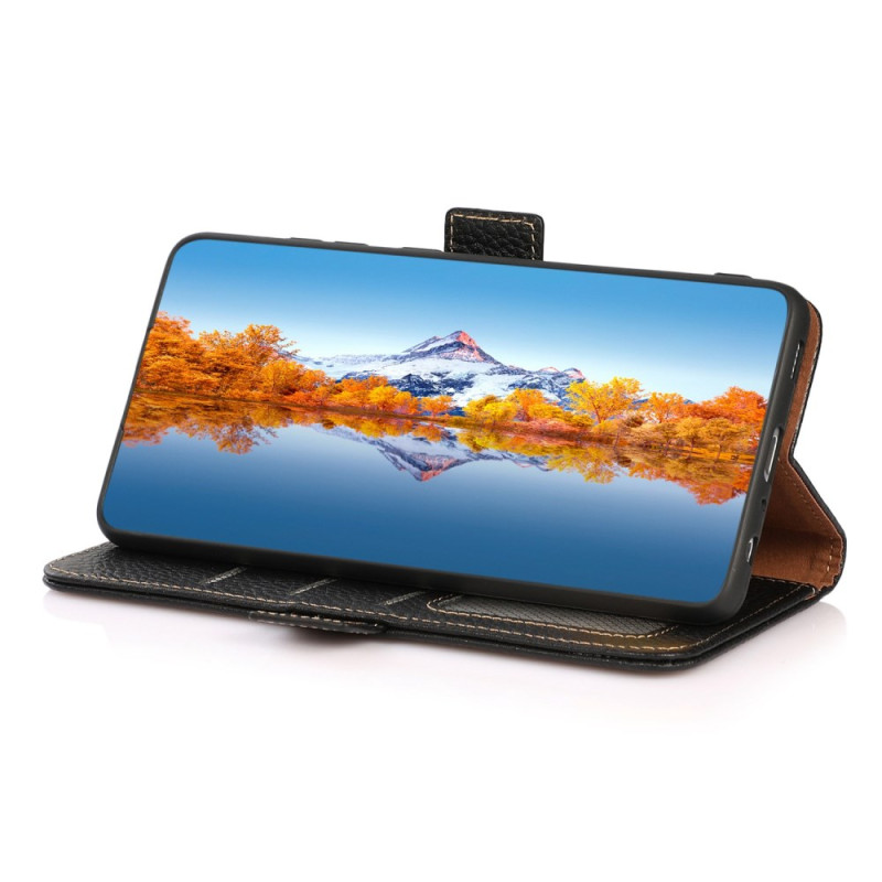 Schützen Sie Ihr Honor X6b elegant mit dieser Brieftasche aus echtem Rindsleder. Mit einem RFID-Schutz gegen Raubkopien, Kartenschlitzen und einem integrierten Ständer vereint es edlen Stil mit praktischer Alltagstauglichkeit.