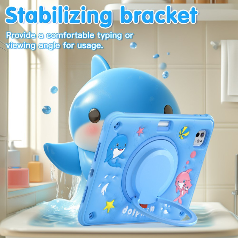 Entdecken Sie unsere niedliche und multifunktionale Hülle für das iPad Pro 11 (2025) / 11 (2024). Mit ihrem niedlichen Delfin-Motiv, dem mehrschichtigen Schutz, dem drehbaren Griff und dem faltbaren Ständer bietet sie optimalen Schutz und ist vielseitig einsetzbar. Nutzen Sie außerdem den integrierten Stifthalter und den abnehmbaren Schultergurt für maximale Tragbarkeit.