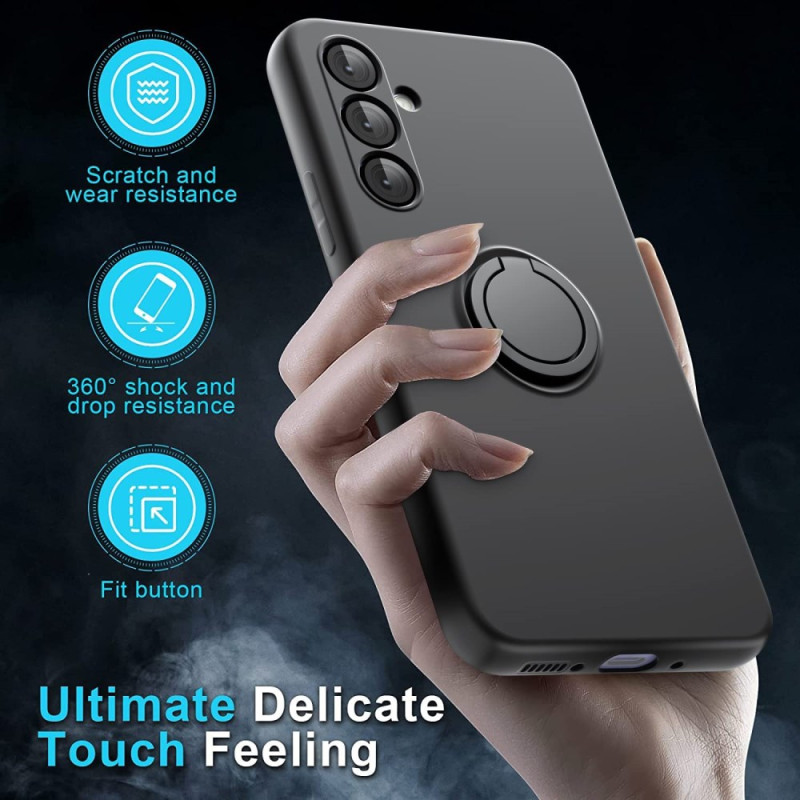 Schützen Sie Ihr Samsung Galaxy A57 5G mit dieser Premium-Hülle aus umweltfreundlichem Flüssigsilikon. Ausgestattet mit einem praktischen drehbaren Ständer und einer integrierten Metallplatte für die magnetische Halterung bietet sie einen umfassenden Schutz inklusive 2.5D Hartglasfolie.
