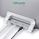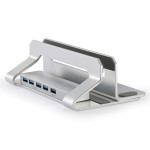 Die Rationalisierung des Arbeitsplatzes und die Integration von Konnektivität sind die Hauptvorteile dieses vertikalen Organizers. Dieser aus einer haltbaren Aluminiumlegierung gefertigte Ständer hält Ihren Laptop (bis zu 17,3 Zoll) in vertikaler Position und macht so wertvollen Platz auf dem Schreibtisch frei. Die Integration eines 4-Port USB 3.0-Hubs ermöglicht den einfachen Anschluss von Peripheriegeräten und ein optimiertes Kabelmanagement. Die Breiteneinstellung (7 mm bis 21 mm) erfolgt werkzeuglos über einen gerändelten Knopf. Silikonpads schützen das Gerät vor Kratzern.