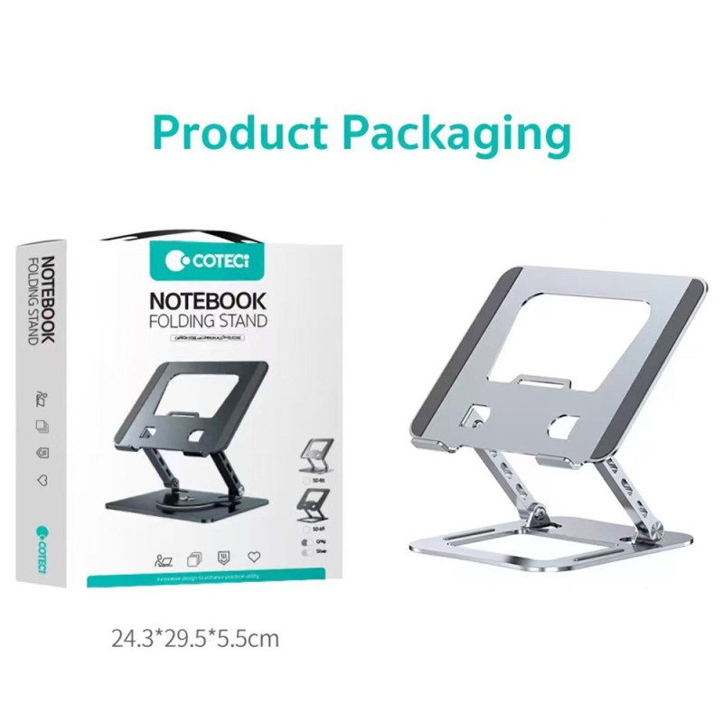 Der faltbare COTECI Laptop- und Tablet-Ständer vereint ergonomischen Komfort und Stabilität. Er wurde aus Karbonstahl und einer Aluminiumlegierung hergestellt und bietet eine bemerkenswerte Stabilität, während er gleichzeitig leicht und einfach zu transportieren ist. Seine einstellbare Höhe entlastet den Nacken und verbessert die Haltung bei längerem Gebrauch, ideal für Telearbeit oder Geschäftsreisen. Er ist mit den meisten Computern und Tablets kompatibel und lässt sich im Handumdrehen zusammenklappen, um ihn praktisch zu verstauen. Sein modernes und raffiniertes Design fügt sich nahtlos in jeden Arbeitsbereich ein.