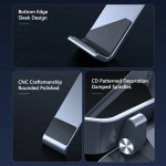 Dieser X-förmige Ständer vereint Stabilität, Eleganz und Leistung, um ein optimales Arbeitserlebnis zu bieten. Seine einteilige Struktur aus einer hochdichten Aluminiumlegierung bietet einen sicheren und widerstandsfähigen Halt für Ihre Geräte bis zu 17 Zoll. Sein durchbrochenes Design fördert eine optimale Luftzirkulation und beugt so einer Überhitzung vor. Da er in Höhe und Winkel verstellbar ist, passt er sich leicht an Ihre Körperhaltung an und sorgt so für lang anhaltenden ergonomischen Komfort. Der P70 ist leicht, faltbar und kratzfest und somit ein wichtiges Accessoire für das Büro, zu Hause oder für die Arbeit im Home Office.