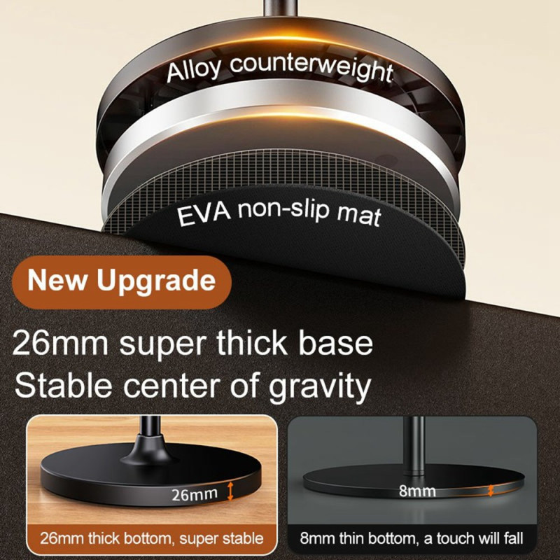 Der Boneruy Bodenständer ist die ideale Lösung für Streaming, Online-Unterricht oder freies Videoschauen. Sein um 360° drehbares Design und die von 51 bis 101 cm einstellbare Höhe bieten optimalen Komfort, egal ob Sie liegen, sitzen oder stehen. Hergestellt aus einer Aluminiumlegierung, Karbonstahl, Kunststoff und Silikon, sorgt er für Stabilität und Haltbarkeit. Sein verstellbarer Arm bietet Platz für zwei Telefone gleichzeitig oder einen Tablet-PC in horizontaler oder vertikaler Ausrichtung. Zusammenklappbar und elegant passt er sich allen Umgebungen und alltäglichen Nutzungen an.