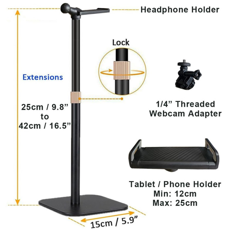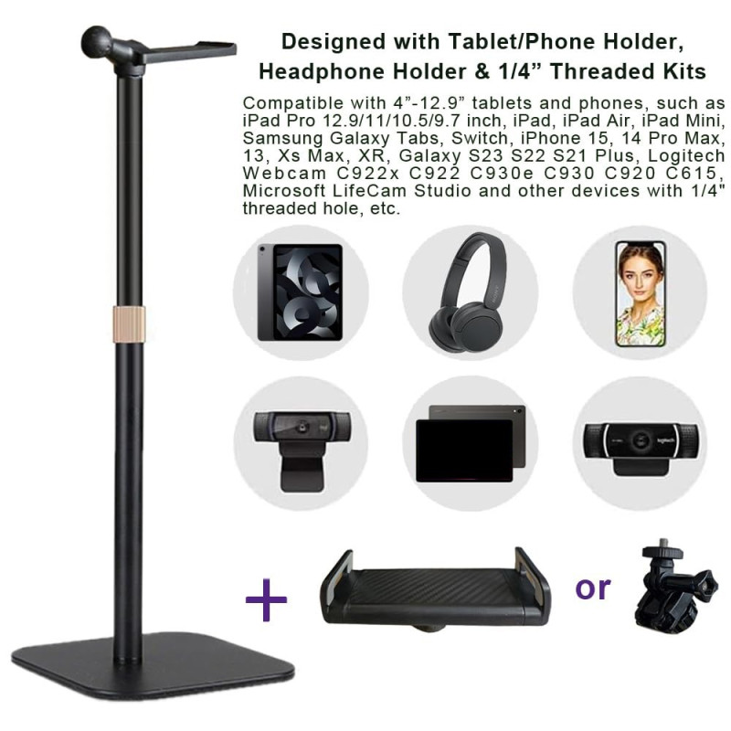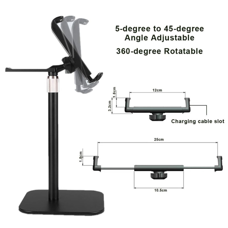 Dieser verstellbare Tischständer bietet eine praktische und ergonomische Lösung, um Ihr Smartphone oder Ihren Tablet-PC freihändig zu bedienen. Hergestellt aus ABS, PC und Metall, bietet er eine hervorragende Stabilität und ist gleichzeitig langlebig im Alltag. Sein verstellbares Design ermöglicht es Ihnen, den Blickwinkel und die Höhe anzupassen, sodass Sie immer bequem sitzen, egal ob Sie ein Video ansehen, einem Kurs folgen oder im Internet surfen. Die Öffnung an der Unterseite des Ständers erleichtert das Aufladen während des Gebrauchs, während der integrierte Kopfhörerhalter dabei hilft, den Schreibtisch übersichtlich und organisiert zu halten. Er ist mit Geräten von 4 bis 11 Zoll kompatibel und ein unverzichtbares Zubehör für Ihren Arbeitsplatz.