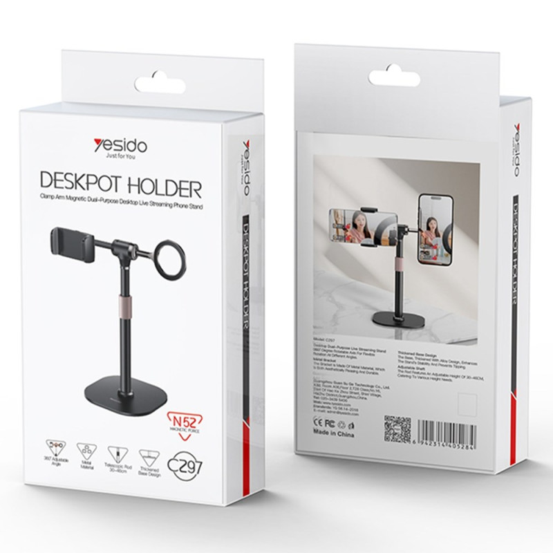 Dieser verstellbare Tischständer für zwei Telefone ist ideal für Streaming, Multitasking und professionelle Videokonferenzen. Er wurde aus hochwertigem Metall, PC, ABS und POM hergestellt und bietet dank seiner robusten Basis aus einer Legierung eine beispielhafte Stabilität. Sein starker N52-Magnet ermöglicht eine direkte und sichere Befestigung von iPhone 12 bis 16, während der zusätzliche Clip Smartphones mit einer Größe von 4,7 bis 6,5 Zoll aufnimmt. Der höhenverstellbare Arm und das um 360° drehbare Kugelgelenk bieten absolute Flexibilität, sodass Sie je nach Bedarf problemlos zwischen horizontalem und vertikalem Modus wechseln können.