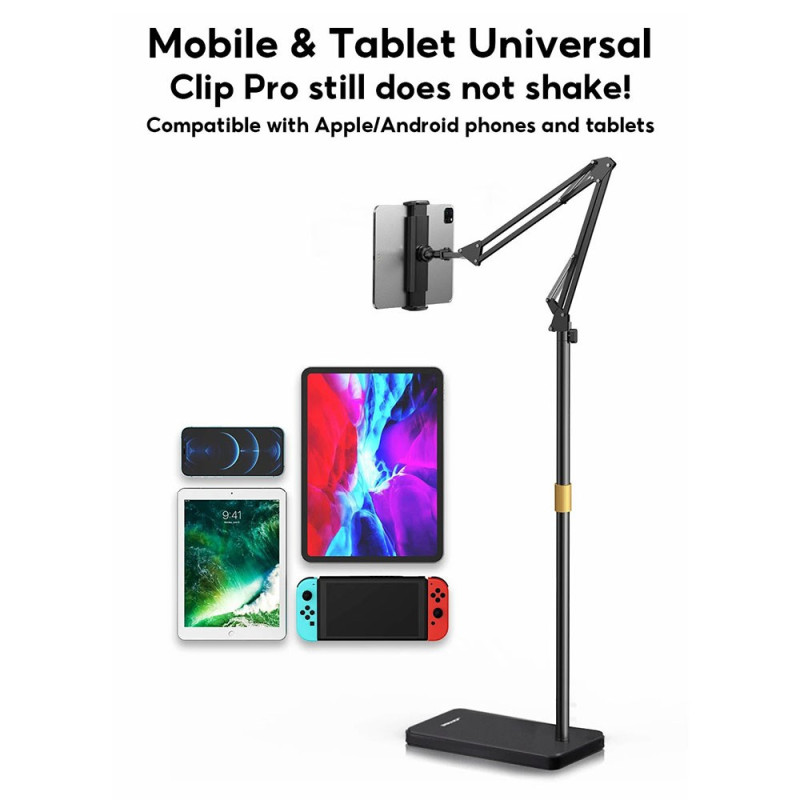 Genießen Sie optimalen Komfort mit diesem teleskopischen Bodenständer, der sich bis zu 1,6 m in der Höhe verstellen lässt. Sein flexibler Arm und die 360°-Drehung ermöglichen eine perfekte Positionierung Ihres Geräts. Robuste Konstruktion aus Stahl und ABS für maximale Stabilität.