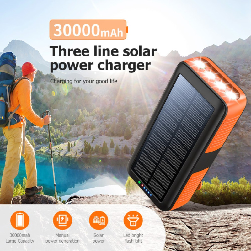 Wenn der Zugang zu Elektrizität nicht gewährleistet ist, wird diese Externe Batterie zu einer wichtigen Überlebensausrüstung. Mit einer massiven Kapazität von 30000mAh ist sie für lange Expeditionen und Notsituationen konzipiert. Die einzigartige duale Lademethode - Solar und Handkurbel - sorgt für eine gleichbleibende Akkulaufzeit, auch ohne Netzanschluss. Mit dem IP66-Zertifikat ist sie robust, langlebig, spritzwasser- und staubgeschützt. Für die Sicherheit verfügt sie über eine leistungsstarke 4-LED-Taschenlampe mit SOS-Modus. Darüber hinaus machen die drei abnehmbaren Kabel (Lightning, Type-C, Micro) das Mitführen von zusätzlichem Zubehör überflüssig und bieten so maximale Vielseitigkeit.