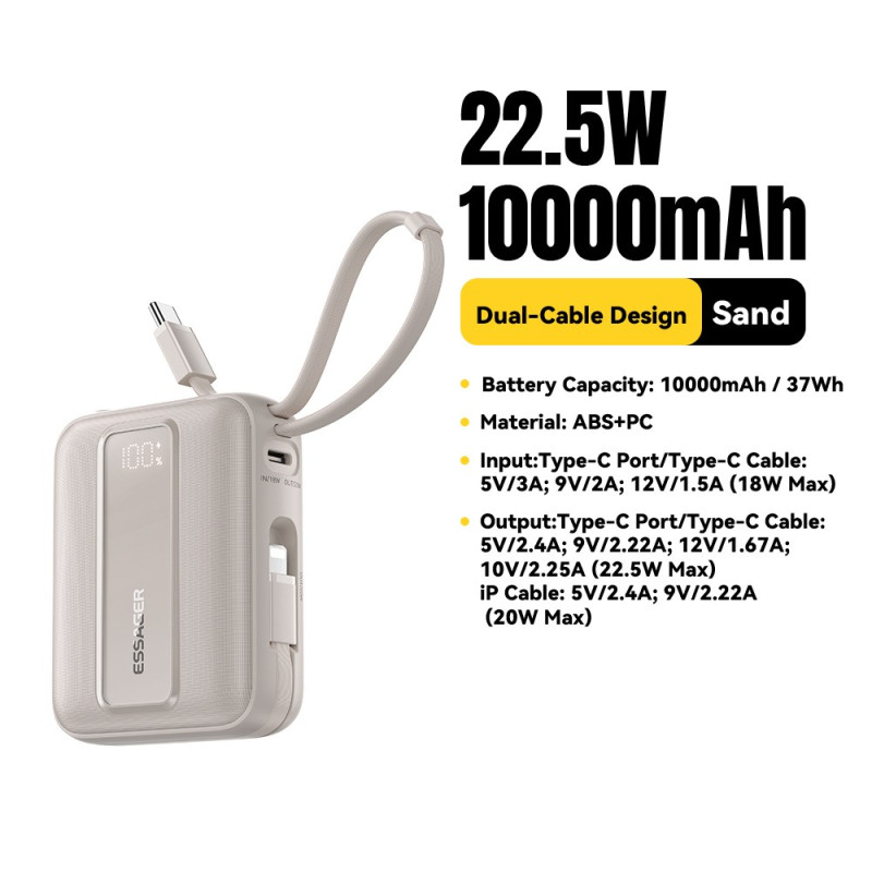 Externe Batterie 10000mAh 22.5W Schnellladung Digitale Anzeige ESSAGER