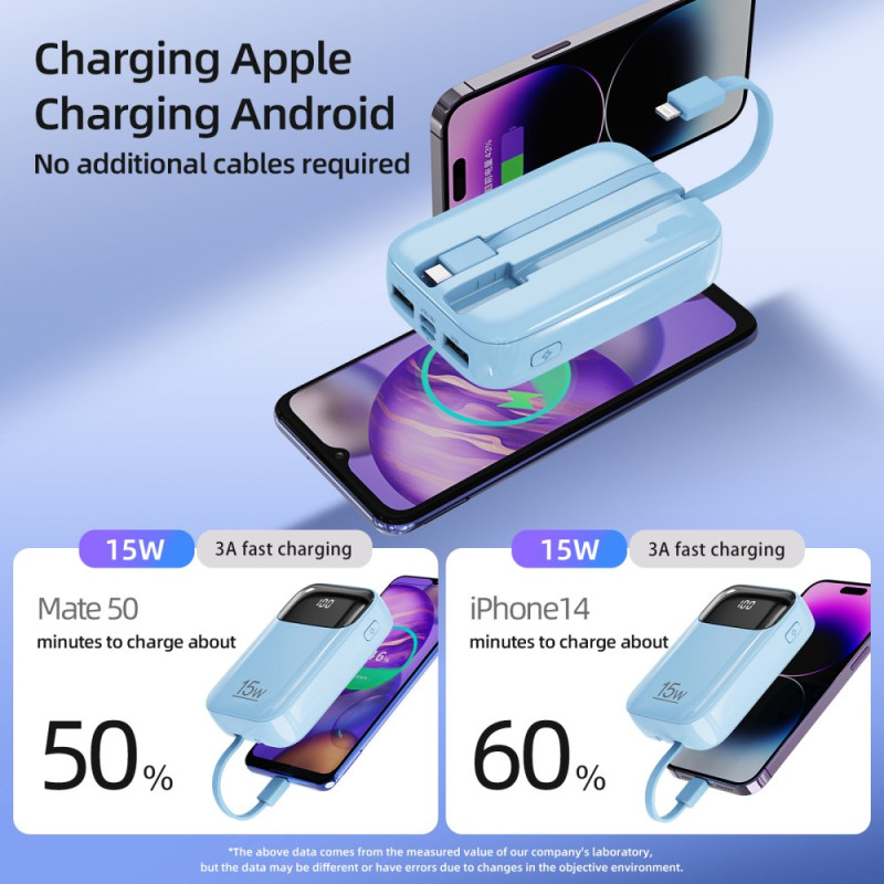 • Integrierte Universalkabel: Verfügt über integrierte Typ-C- und Lightning-(iP)-Kabel für sofortige Kompatibilität ohne externe Kabel.