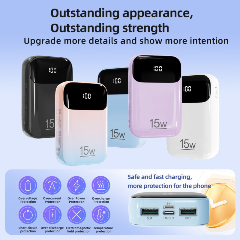 • Kolossale Kapazität 20000mAh: Bietet eine massive Energiereserve, ideal für lange Zeiträume oder zum Teilen.