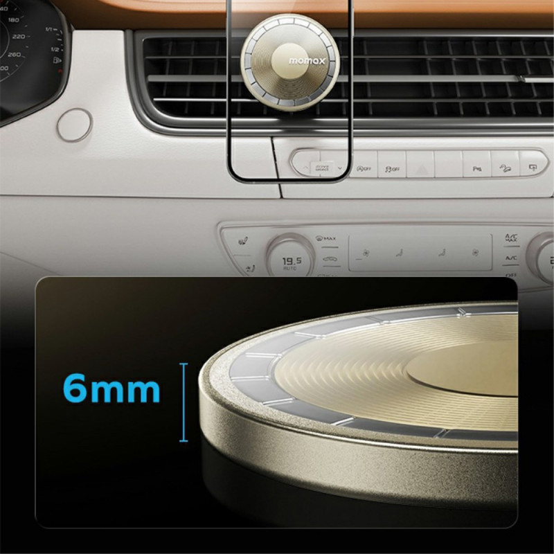 Um 360° drehbare magnetische Halterung für das Auto mit kabelloser Aufladung. Starke Magnetkraft von 1200 g hält Ihr Smartphone sicher fest. Ultradünnes 6-mm-Design, das perfekt in die Lüftungsgitter passt. Kompatibel mit allen Apple- und Android-Smartphones.