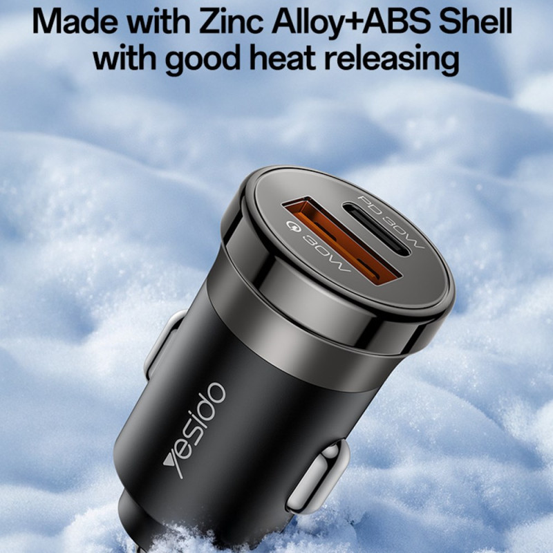 Rechargez rapidement vos appareils en déplacement avec le chargeur YESIDO. Équipé de deux ports (USB-A et USB-C) offrant jusqu'à 30W de puissance, il supporte les protocoles de charge rapide PD, QC, AFC et FCP. Compatible avec tous les véhicules 12V et 24V.