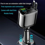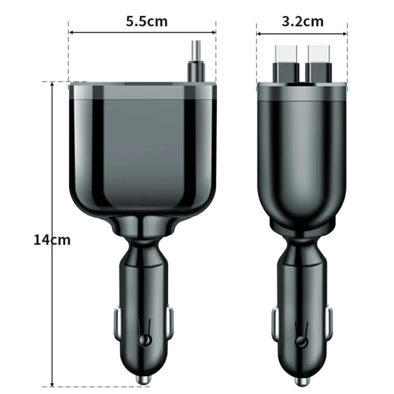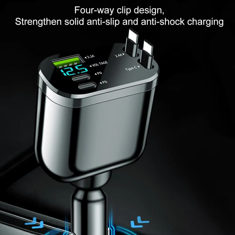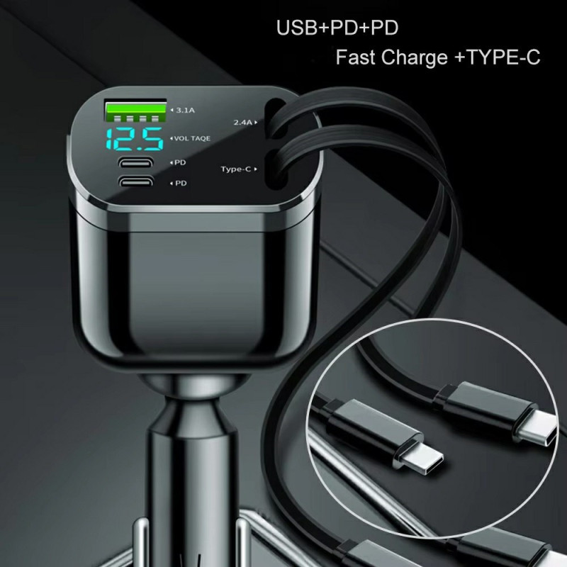 Mit diesem intelligenten Autoladegerät können Sie bis zu 5 Geräte gleichzeitig aufladen. Ausgestattet mit der PD-Schnellladetechnologie, einer digitalen LED-Anzeige und 2 praktischen einziehbaren Kabeln. Integrierter mehrschichtiger Schutz für optimale Sicherheit.