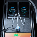 Genießen Sie mit diesem intelligenten Autoladegerät eine ultraschnelle 66W-Aufladung unterwegs. Mit integriertem, einziehbarem 1,5 m langem Type-C-Kabel, mehreren USB-A- und USB-C-Anschlüssen und einem erweiterten Schutz für Ihre Geräte. Kompatibel mit allen Fahrzeugen.