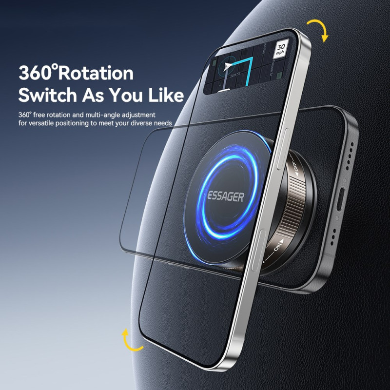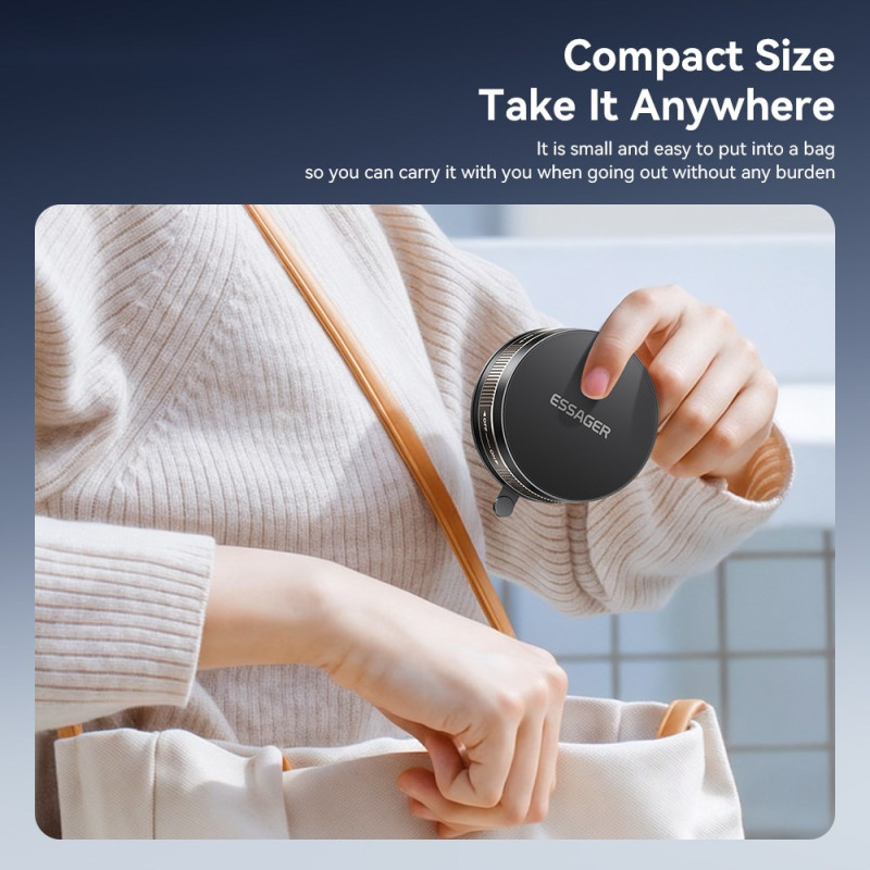 Ihr Smartphone wird stabil und flexibel auf jeder glatten Oberfläche befestigt, vom Armaturenbrett bis zum Schreibtisch. Diese ESSAGER-Halterung verwendet einen extrem starken N52-Neodym-Magneten, um eine zuverlässige magnetische Haftung Ihres Geräts zu gewährleisten. Die Saugnapfhalterung bietet eine überlegene Vielseitigkeit bei der Platzierung. Dank des um 360 Grad drehbaren Kugelgelenks können Sie den Blickwinkel für optimale Sicht beim Surfen oder bei Videokonferenzen anpassen. Dank des kompakten Formats lässt sich das Gerät problemlos transportieren.