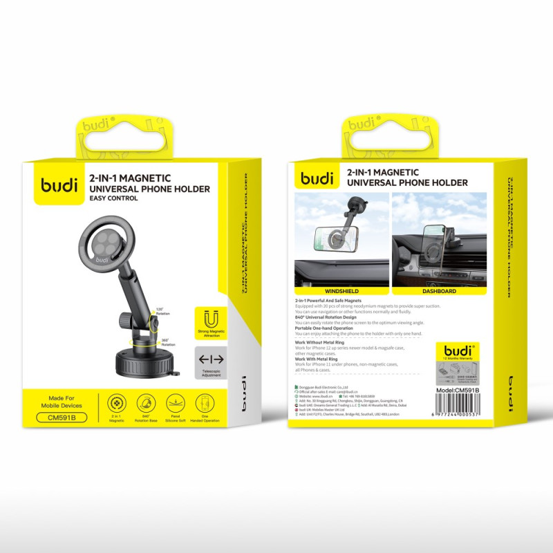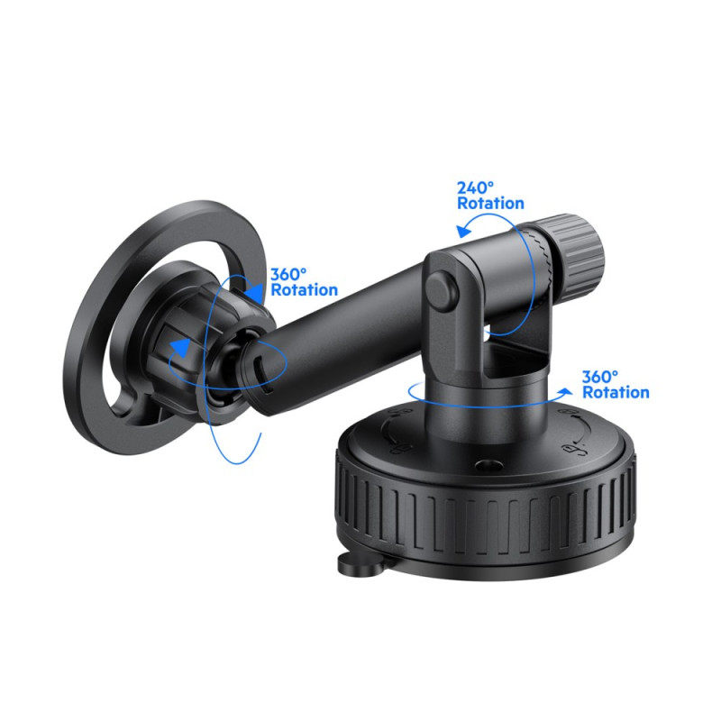 Die volle Kontrolle über den Blickwinkel und die Sicherheit des Geräts sind wesentliche Faktoren für ein ablenkungsfreies Fahren. Diese BUDI-Halterung verwendet einen starken Magneten, um das Telefon auch bei plötzlichen Bewegungen sicher zu halten. Die Vorrichtung verfügt über eine integrierte Doppeldrehung (360° am Anschluss und 240° am Arm), die eine vollständige Anpassung an die Bedürfnisse beim Navigieren oder bei Videoanrufen ermöglicht. Die Saugnapfbasis sorgt für eine vielseitige und zuverlässige Befestigung auf verschiedenen Oberflächen. Das Anbringen und Entfernen des Telefons geht schnell und wird durch die magnetische Adsorption erleichtert.