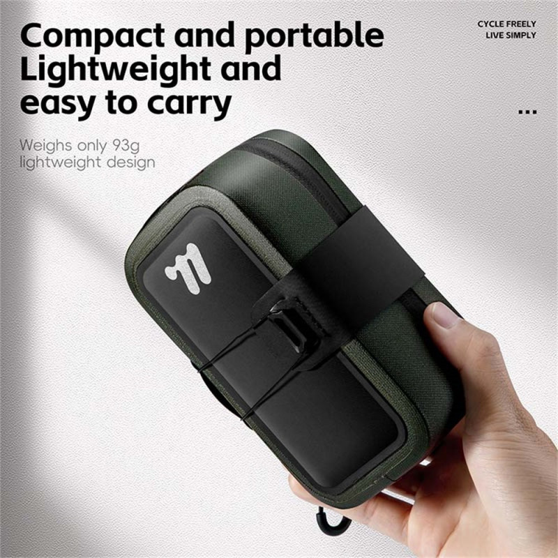Die sichere Aufbewahrung von Werkzeugen auch in extremem Gelände zu gewährleisten, ist die Hauptaufgabe dieser Satteltasche. Sie besteht aus 600D-Polyester und TPU und nutzt eine nahtlose Schweißtechnologie, um eine vollständige Abdichtung gegen Feuchtigkeit zu gewährleisten. Der innovative Selbstsicherungsmechanismus (Self-Locking) sorgt für eine feste Befestigung an der Sattelschiene und verhindert ein versehentliches Lösen. Das Anbringen und Entfernen geht dank des Drehschnallendesigns schnell vonstatten. Trotz seiner kompakten Größe (0,5L) bietet er optimierten Platz für Reparaturkits und Essentials und bewahrt dabei ein aerodynamisches Profil.