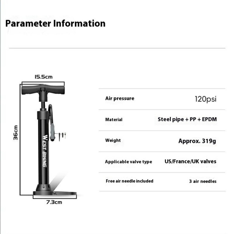 Diese Pumpe wurde für maximale Effizienz beim Aufpumpen entwickelt und basiert auf einer Stahlkonstruktion mit hoher Härte. Sie hält einem Druck von bis zu 120 PSI stand und ist damit ideal für Reifen, die einen hohen Druck benötigen (Rennräder). Ihre Vielseitigkeit wird durch ihre universelle Kompatibilität mit Presta-, Schrader- und Dunlop-Ventilen gewährleistet, wodurch sie alle Arten von Fahrrädern, Motorrädern und Elektrofahrzeugen abdeckt. Der Griff ist abnehmbar, wodurch die Aufbewahrung optimiert und die Pumpbewegung erleichtert wird. Dieses Gerät ist ein unentbehrlicher Helfer für die Wartung zu Hause und unterwegs.