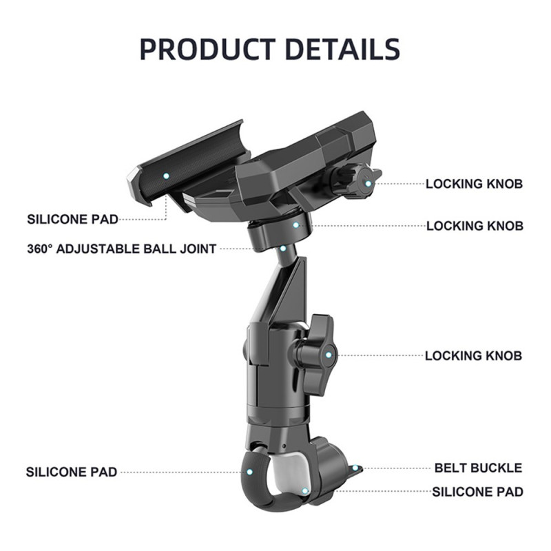 • Anti-Vibrations-Pads: Stoßdämpfende Silikonkissen, die das Telefon in unwegsamem Gelände sicher machen.