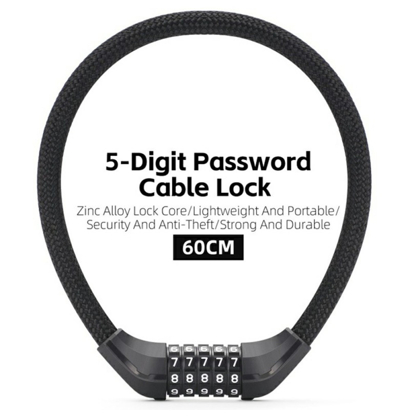 Schlüssellose Sicherheit und Wirksamkeit gegen Diebstahl bietet das Hochleistungskombinationssystem dieses Schlosses. Das fünfstellige Schloss macht Schlüssel überflüssig und bietet 100.000 Kombinationen für ein hohes Maß an Schutz. Das innere Stahlkabel ist für maximale Haltbarkeit verstärkt. Die äußere Beschichtung aus Polypropylengewebe schützt den Rahmen Ihres Fahrrads vor Kratzern und fühlt sich auch bei kaltem Wetter angenehm an. Der Kopf aus einer Zinklegierung sorgt für einen robusten Mechanismus. Mit einer Länge von 60 cm und seinem kompakten Design ist er ideal für den täglichen Transport.