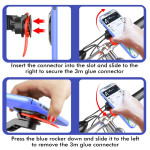 Die Sicherheit der Vorrichtung während der Fahrt wird durch das integrierte Verriegelungssystem auch in extremstem Gelände gewährleistet. Diese Halterung HL-143A aus Aluminiumlegierung und ABS verfügt über ein Super Lock-System, das eine stabile und stoßfeste Befestigung gewährleistet. Das Telefon (4,7 bis 6,7 Zoll) kann in Sekundenschnelle und mit nur einer Hand angeschlossen oder abgenommen werden, wodurch die Reaktionsfähigkeit des Radfahrers optimiert wird. Das um 360 Grad drehbare Kugelgelenk ermöglicht eine sofortige Anpassung des Blickwinkels. Einmal angebracht, bietet es einfachen Zugriff auf Navigation, Apps und Nachrichten.