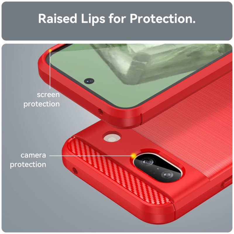 Entdecken Sie unsere Hülle für das Google Pixel 8A, die aus Silikon mit einer Textur aus gebürsteten Kohlefasern gefertigt ist.