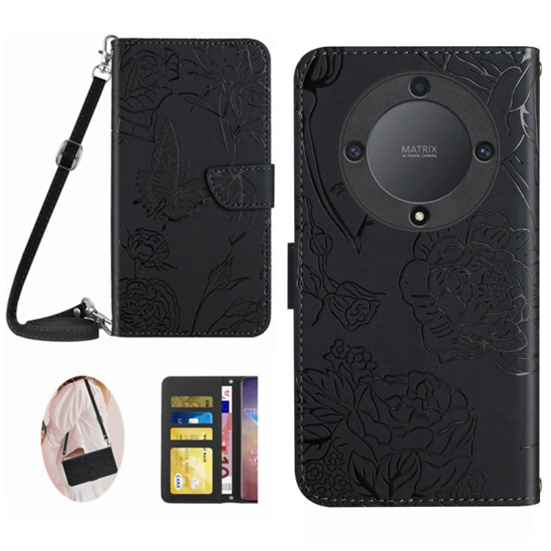 Honor Magic 5 Lite 5G / X9a Tasche Schmetterlinge und Schulterriemen