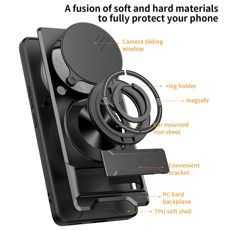 Maximaler Schutz für Ihr Honor mit dieser innovativen magnetischen Hülle. Stoßfeste Doppelschicht, 360° drehbarer Ring, integrierter Klappständer und verschiebbare Kameraabdeckung. Kompatibel mit magnetischen Halterungen für Autos.