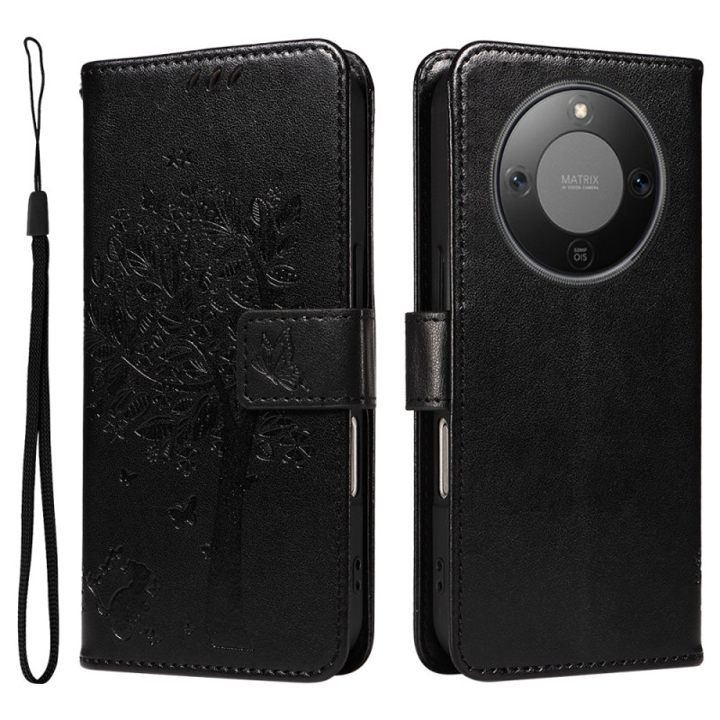 Schützen Sie Ihr Honor Magic 8 Lite elegant mit dieser multifunktionalen Brieftasche. Mit einem raffinierten Katzen- und Baummotiv versehen, bietet es Kartenfächer, einen integrierten Ständer und eine praktische Handschlaufe für den optimalen täglichen Gebrauch.