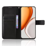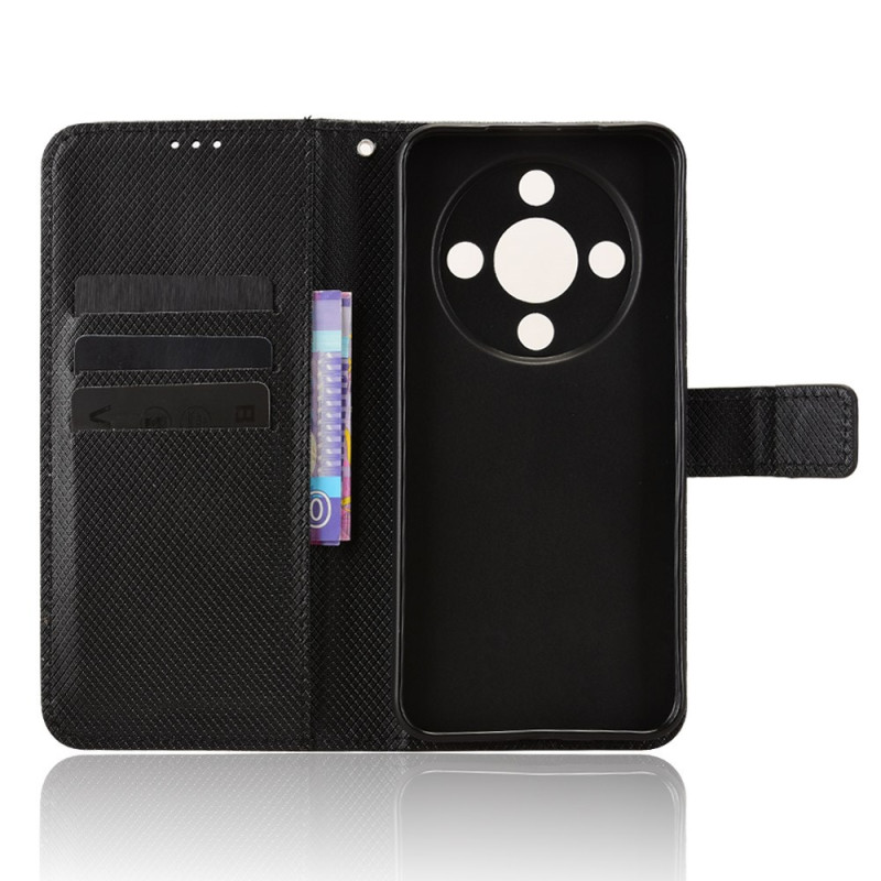 Elegante Brieftasche mit Diamanttextur für Honor Magic 8 Lite. Ausgestattet mit Kartenschlitzen, einem Fach für Bargeld und einer praktischen Handschlaufe. Sicherer Magnetverschluss und integrierter Klappständer für optimales freihändiges Betrachten.