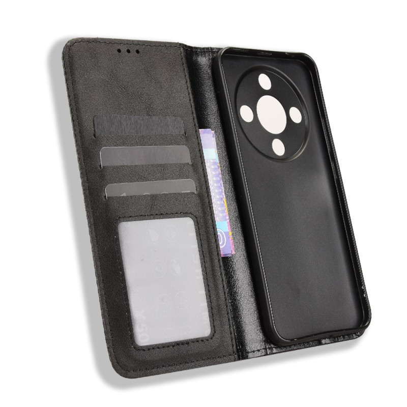 Schützen Sie Ihr Honor Magic 8 Lite elegant mit dieser Brieftasche aus PU-Leder im Retro-Look. Mit Kartenschlitzen, einem verstellbaren Halter und einem automatischen Magnetverschluss vereint es Vintage-Stil und umfassenden Schutz.
