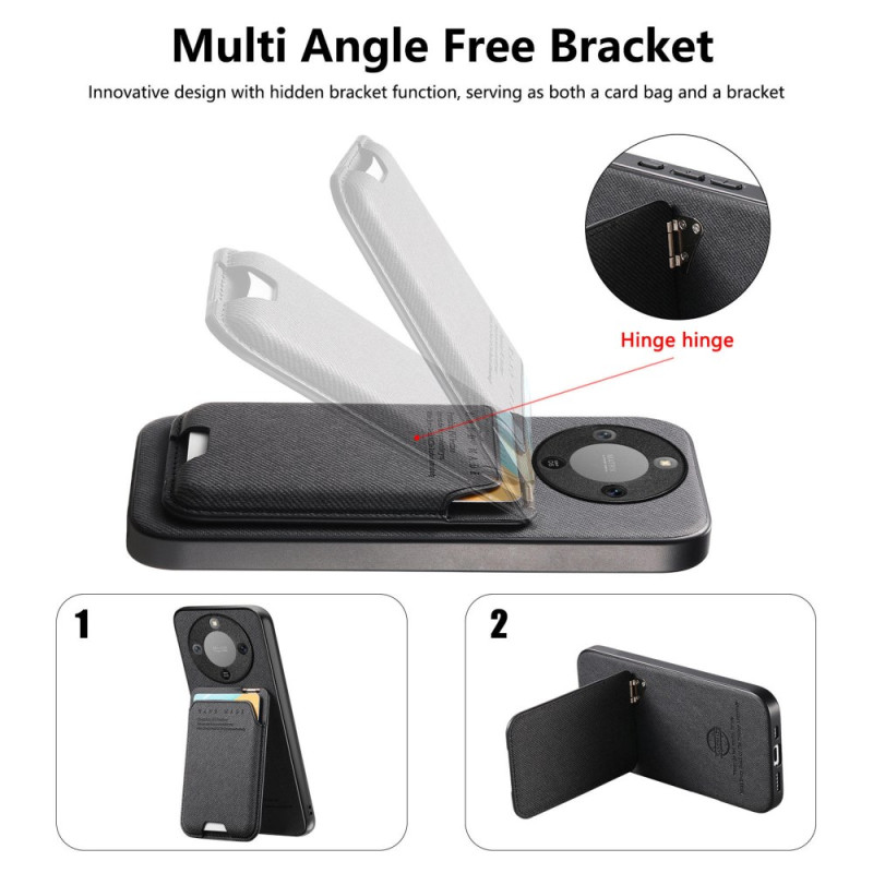 Schützen Sie Ihr Honor Magic 8 Lite stilvoll mit dieser eleganten Multifunktionshülle. Das raffinierte Design beinhaltet einen praktischen Kartenhalter und eine verstellbare Mehrwinkelhalterung für ein optimales Freisprech-Erlebnis im Alltag.