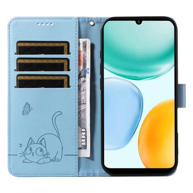 Entdecken Sie unsere multifunktionale Brieftasche für das Honor X5c Plus. Sie verfügt über ein elegantes Design mit einem Glückskatzenmotiv, bietet umfassenden Schutz und praktische Funktionen. Mit drei Kartenfächern, einem Geldscheinfach und einem sicheren Magnetverschluss vereint dieses Etui Stil und Praktikabilität.
