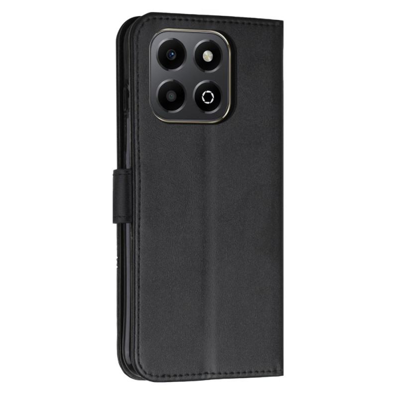 Étui portefeuille élégant en cuir PU texturé pour Honor X6b 4G / X6a 4G. Doté de fentes pour cartes, porte-monnaie et support mains libres intégré. Fermeture magnétique sécurisée et dragonne pratique incluse. Protection complète contre les chocs.