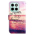 Elegante Brieftasche mit inspirierendem "Never Stop Dreaming"-Motiv. Kombiniert Rundumschutz, Brieftaschenfunktionalität mit 3 Kartenfächern, verstellbarem Mehrwinkelhalter und sicherem Magnetverschluss. Wird mit abnehmbarer Handschlaufe geliefert...
