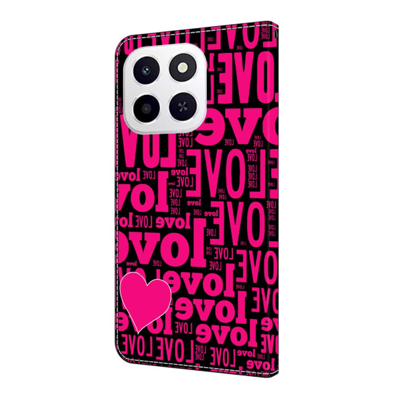 Schützen Sie Ihr Honor X6c 4G elegant mit dieser Brieftasche im LOVE-Design. Klappendesign mit faltbarem Ständer, 2 Kartenfächern und Bargeldfach. Sicherer Magnetverschluss für umfassenden Schutz.