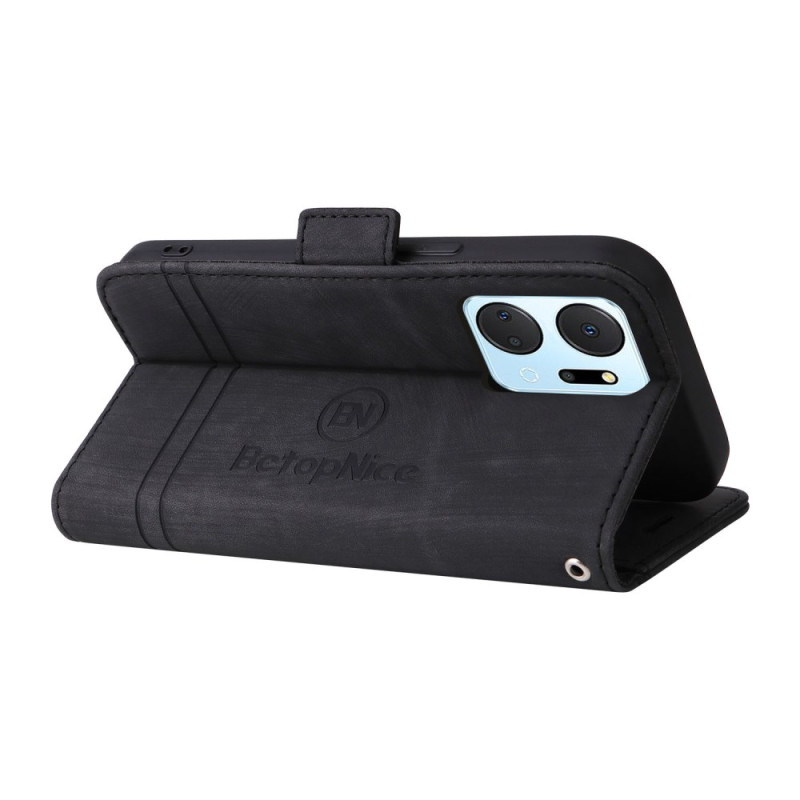 Elegante Brieftasche aus PU-Leder mit integriertem Ständer für Honor X7a 4G. Ausgestattet mit 3 Kartenfächern, 1 Geldscheinfach und einem doppelten Magnetverschluss für optimale Sicherheit. Anspruchsvolles Design mit aufgedrucktem Linienmuster.