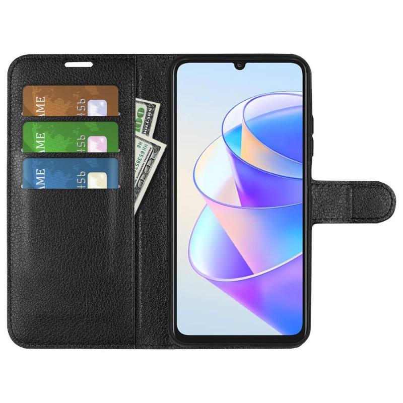 Elegante Brieftasche für Honor X7a 4G, die Schutz und Funktionalität vereint. Design aus strukturiertem PU-Leder mit Kartenfächern, verstellbarem Halter und sicherem Magnetverschluss für den optimalen täglichen Gebrauch.