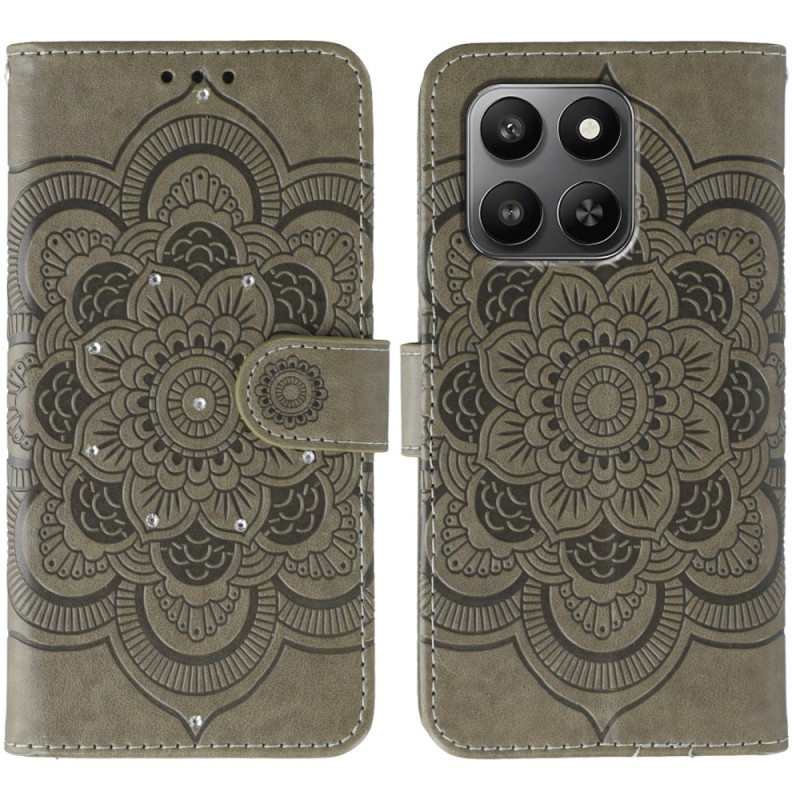 Schützen Sie Ihr Honor stilvoll mit diesem Klappetui, das mit einem raffinierten Mandala-Muster und funkelnden Strasssteinen verziert ist. Mit mehreren Kartenfächern, einer Freisprecheinrichtung und einer praktischen Handschlaufe vereint diese Tasche Stil und Funktionalität für den Alltag.