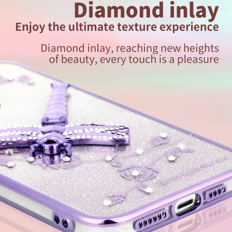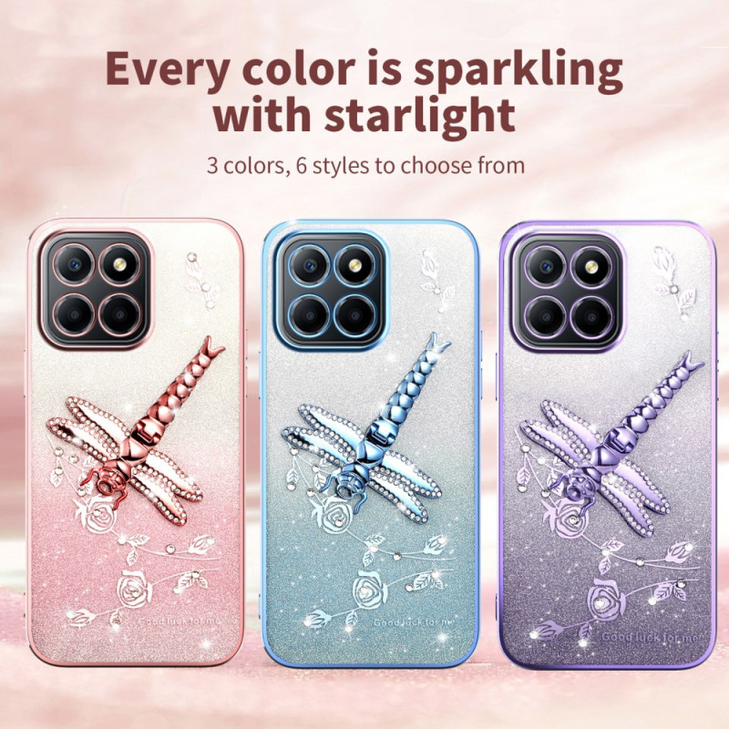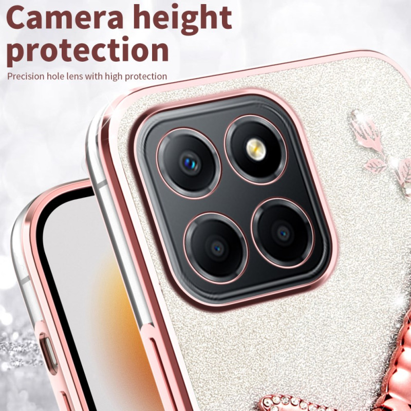 Schützen Sie Ihr Honor X8 5G elegant mit dieser glitzernden Hülle, die mit ewigen Blumen und Strasssteinen verziert ist. Die integrierte Libellenhalterung ermöglicht freihändiges Betrachten, während das flexible TPU-Material optimalen Schutz vor den Erschütterungen des Alltags bietet.
