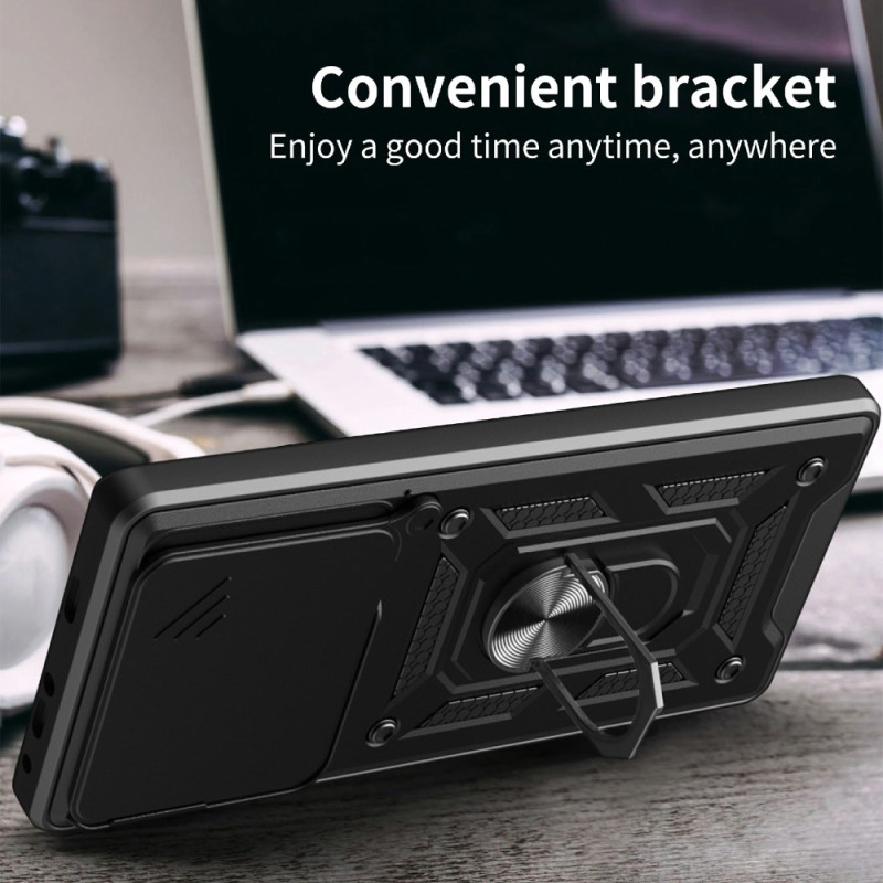 Schützen Sie Ihr Infinix Note 40 Pro mit dieser Premium-Hülle mit verschiebbarem Objektivschutz, drehbarer Mehrwinkelhalterung und Stoßfestigkeit nach Militärstandard. Kompatibel mit magnetischen Autohalterungen.
