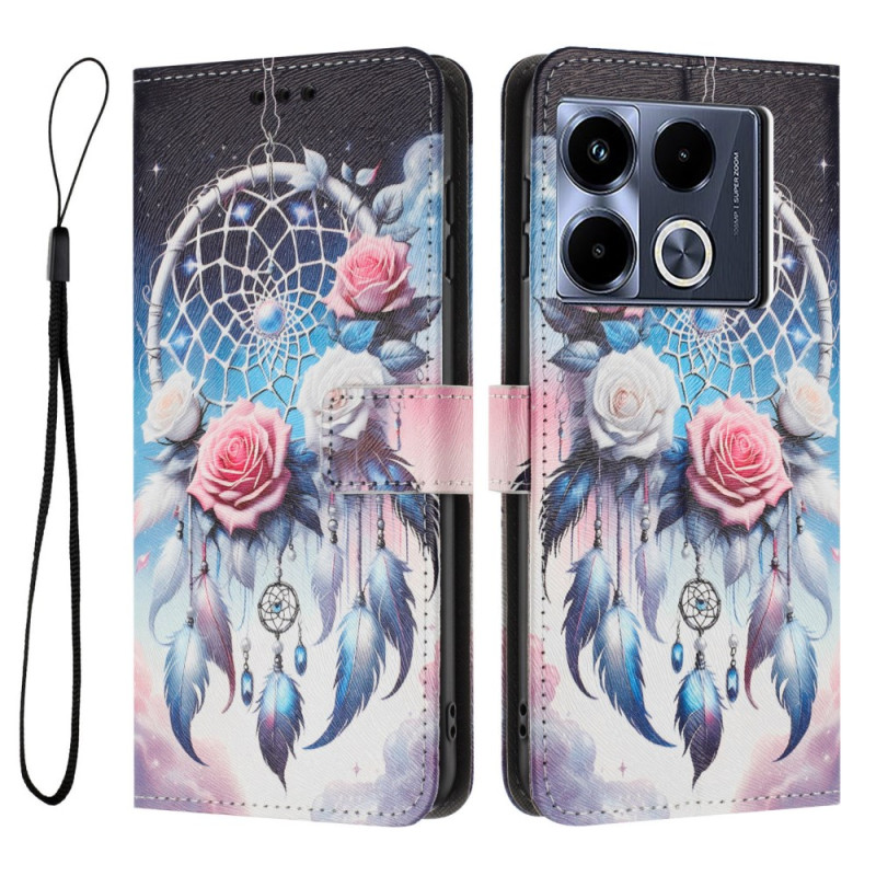 Schützen Sie Ihr Infinix Note 40 Pro 5G / 4G / 40 Pro Plus 5G stilvoll mit dieser Brieftasche mit raffiniertem Blumen-Windspiel-Muster. Mit Kartenfächern, einem faltbaren Ständer und einer praktischen Handschlaufe vereint es Stil und Funktionalität für den Alltag.