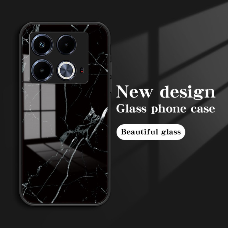 Schützen Sie Ihr Infinix Note 40 elegant mit dieser Hülle aus gehärtetem Glas mit raffiniertem Marmormuster. Dreifacher Schutz durch gehärtetes Glas, PC und TPU für eine optimale Verteidigung gegen Stöße und Kratzer, während das schlanke und leichte Design erhalten bleibt.